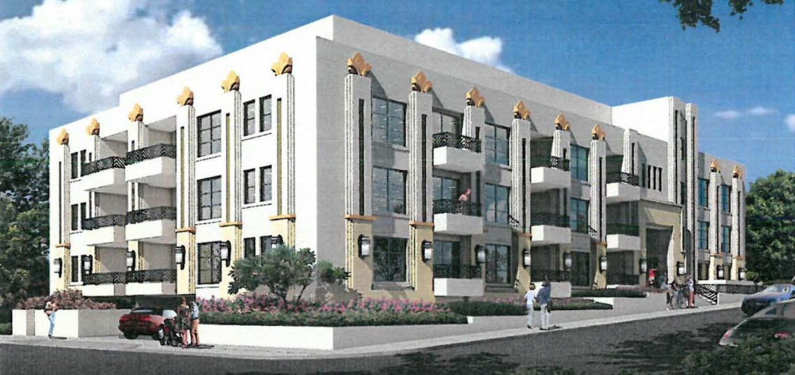 Architect Kamran Tabrizi designed the low-rise structure, which will feature a white stucco exterior with several Art Deco elements. Plans indicate the building will include a side courtyard and a recreation room.