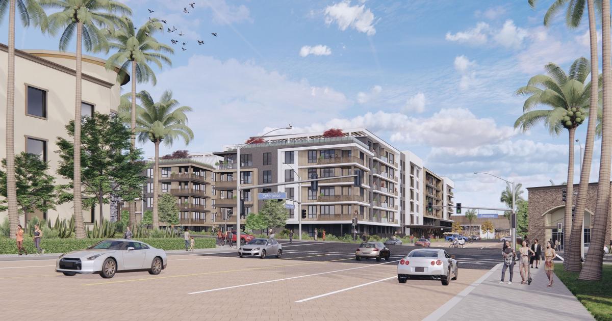 The proposed development, planned for a 4.4-acre site at The Commons at Aliso Viejo Town Center, calls for the construction of a new wrap-style apartment complex featuring 362 studio, one-, two-, and three-bedroom dwellings surrounding parking for 543 vehicles.