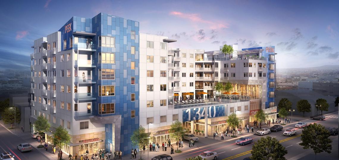 The project site, named for its location at the intersection of 14th and Hill Streets, calls for the construction of a seven-story edifice that would feature 233 rental apartments - including 21 affordable units - atop 9,000 square feet of ground-floor commercial uses and 259 basement parking spaces. Other project components include amenities such as a fitness center, a swimming pool, and a central courtyard.