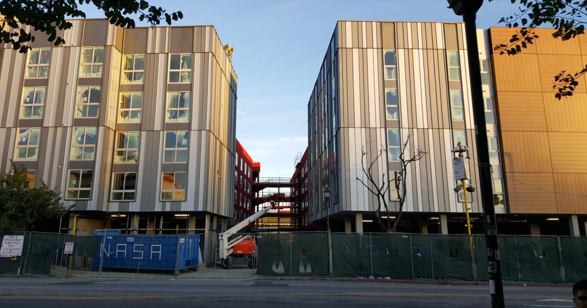 The mixed-use development, located on an approximately two-acre site next to Metro's Chinatown Station, consists of two colorful five-story structures featuring 237 studio, one-, two- and three-bedroom apartments, including 54 reserved for low-income households.