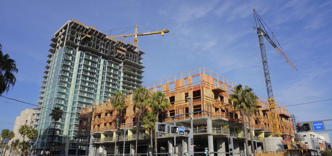 Nine months after kicking off vertical construction, Vancouver-based developer Onni Group has reached its peak at the Broadway Block complex in Downtown Long Beach.