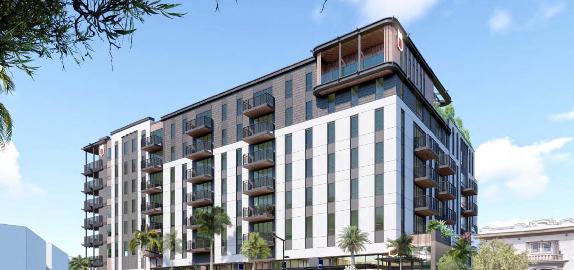 The latest project, a joint venture between Core Spaces and Amplify Development Co. - calls for replacing a small commercial building and a four-unit apartment complex at 3800 S. Figueroa Street with a seven-story edifice featuring 71 apartments and approximately 9,800 square feet of ground-floor retail space. In exchange for incentives through the Transit Oriented Communities guidelines, the project would set aside a total of eight units as affordable housing at the extremely low-income level. Parking for 100 vehicles would be provided in a three-level garage, with one subterranean level and one above-grade level.