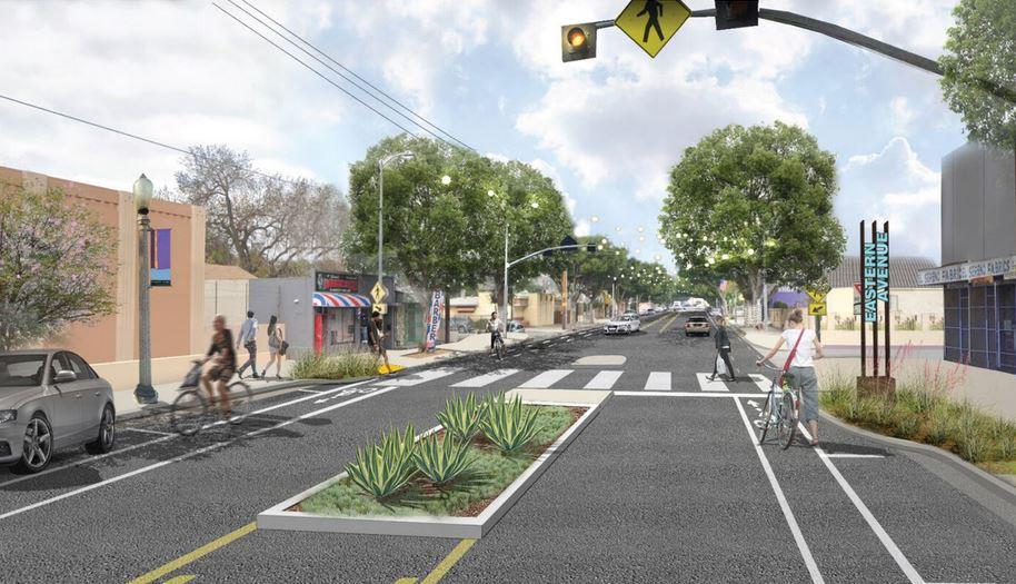 Additionally, the project may include additional bicycle improvements within a half-mile radius of Eastern Avenue, as well as new landscaping and street trees.