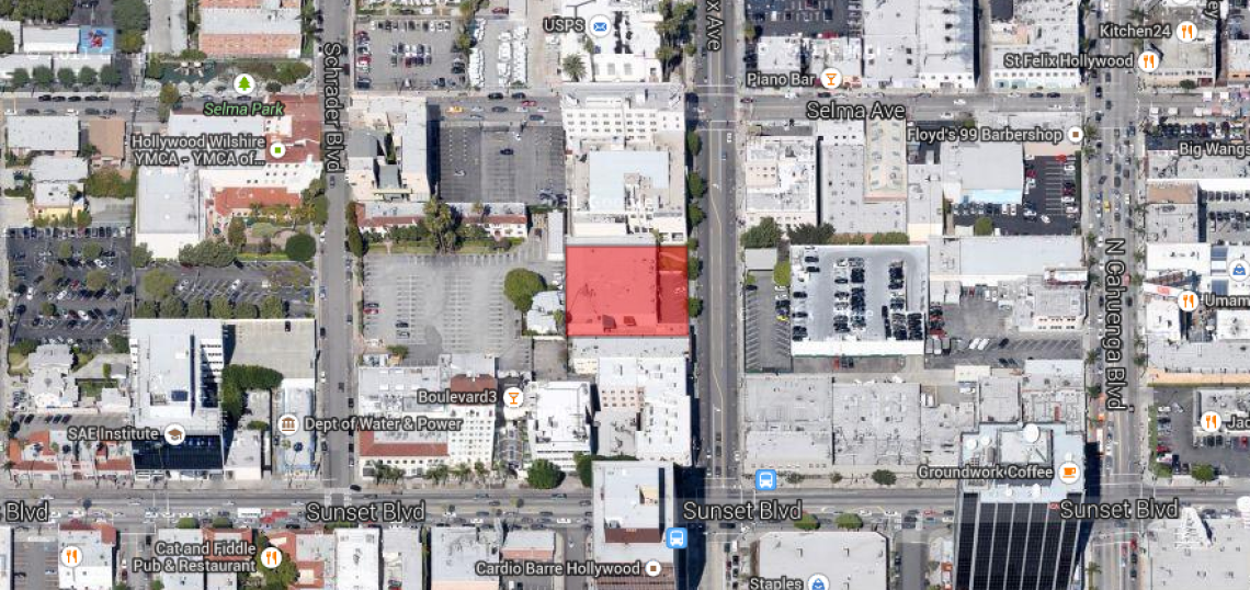 Situated midway between Hollywood and Sunset Boulevards, 1523 Wilcox Avenue would provide guests with easy access to a variety of tourist attractions. Not unexpectedly, it is one of several hotel projects currently planned or underway on surrounding blocks. North on Selma Avenue, construction kicked off last year for the highly-anticipated Dream Hollywood. To the south, a Jack in the Box restaurant near Amoeba Music is also expected to give way for a hotel.