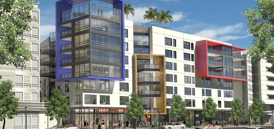 Plans submitted to the city last month by developer DHG Family Trust call for a seven-story structure that would contain 106 residential dwellings and parking accommodations for 114 vehicles and 126 bicycles. At ground level, 1400 S. Figueroa Street would feature 1,400 square feet of retail and restaurant space, plus either four ground floor live/work units or an additional 3,350 square feet of commercial space. The project would offer standard residential amenities including as a fitness center, indoor-outdoor gathering space, and a pool and spa deck.
