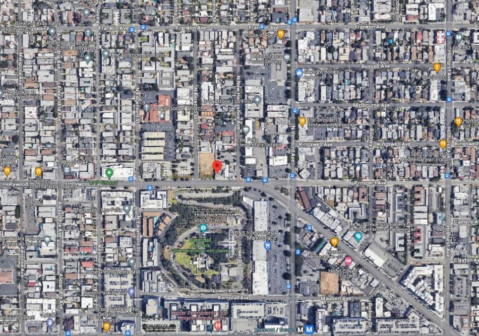 An empty lot located across the street from Barnsdall Park in Los Feliz could see the construction of a new mixed-use apartment building, per an application submitted last week to the Los Angeles Department of City Planning.