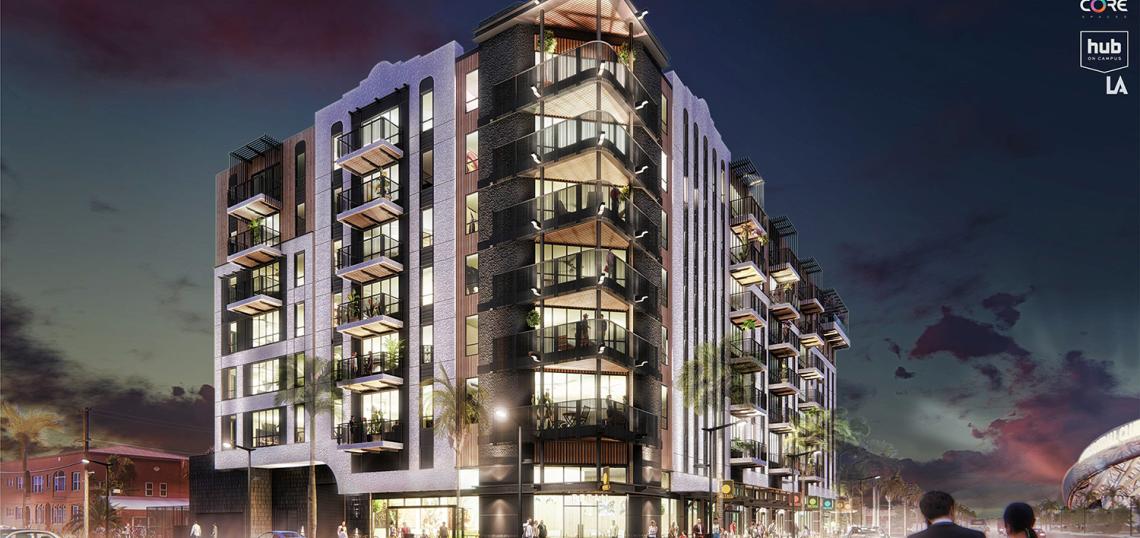The project, a joint venture with Chicago-based developer Core Spaces, calls for replacing a single-story commercial building and a four-unit apartment complex at 3800 S. Figueroa Street with a seven-story building featuring 71 residential units above roughly 9,800 square feet of ground-floor retail space. Plans call for eight of the new apartments to be set aside as affordable housing at the extremely-low-income level - meaning 30 percent of the Los Angeles area median income or less.