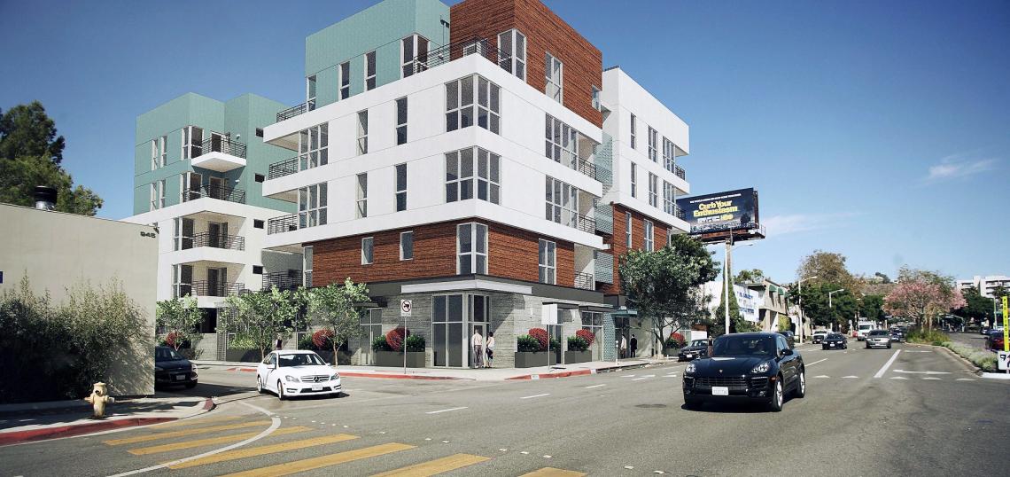 In West Hollywood, construction is now in progress for a mixed-use development at the intersection of Fairfax Avenue and Romaine Street.