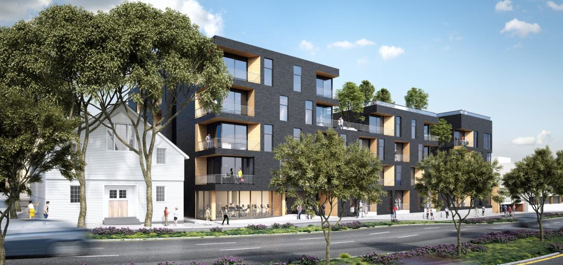 Abramson Architects is designing the proposed development, which will feature an exterior of textured concrete and dark grey plaster.