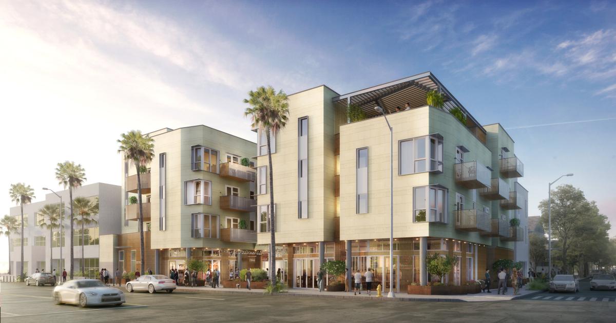 In Mid-City Santa Monica, the wrapping is starting to come off of a new mixed-use apartment complex at the intersection of Wilshire Boulevard and Centinela Avenue.