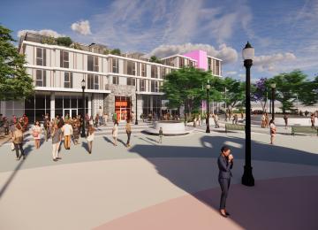The mixed-use building will rise at the intersection of 1st and Rowan