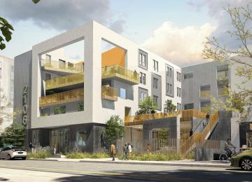 Facade revealed at 57-unit supportive housing development near Expo Park