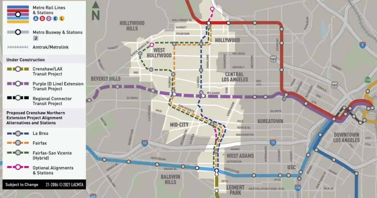 Metro Meetings on Crenshaw Line Northern Extension Reveal Strong Preference for Fairfax/San Vicente (Hybrid) Alignment It is the longest and most circuitous route, but also the one that best serves West Hollywood (Larchmont Buzz)